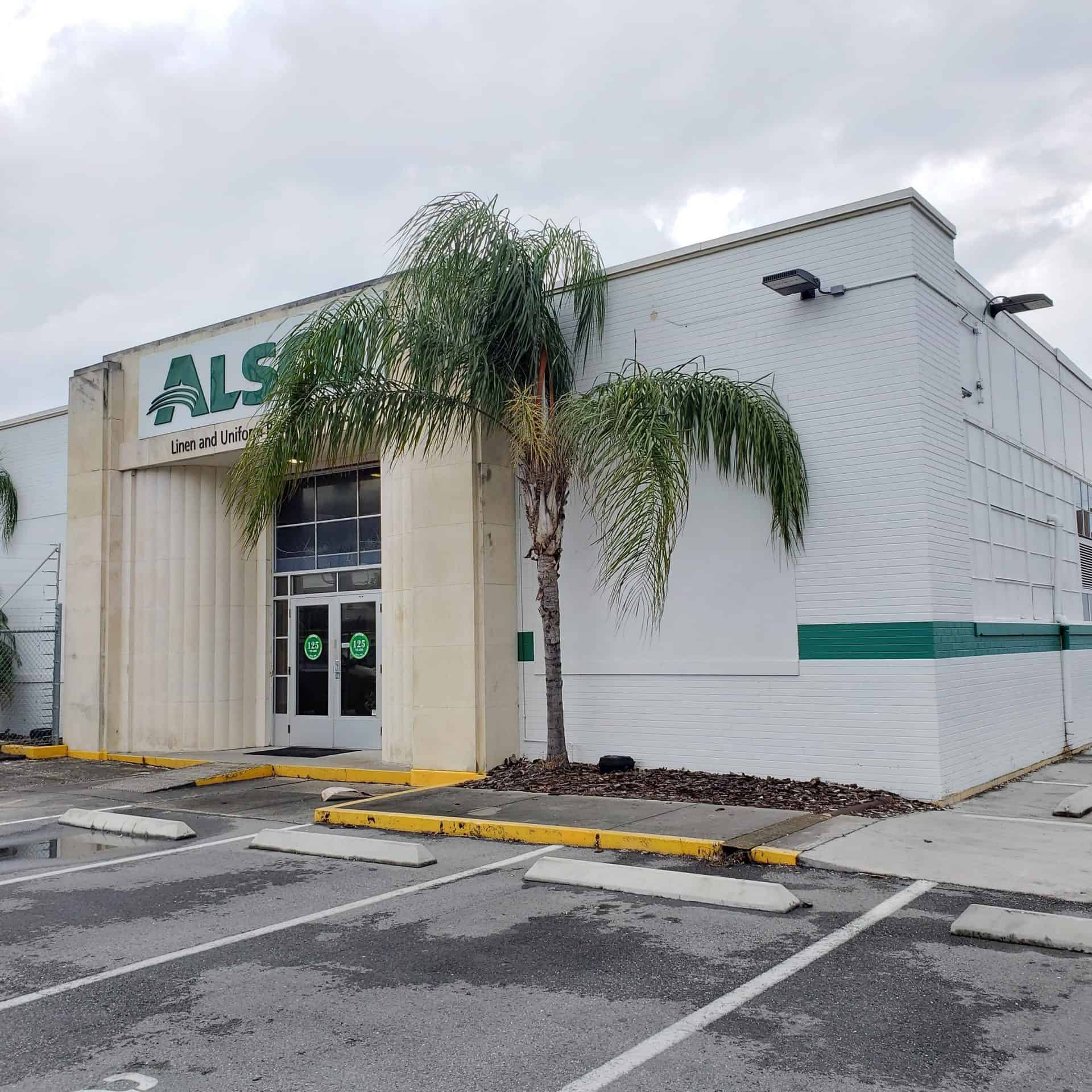 This is a hero image showing the exterior of the Alsco Uniforms location.