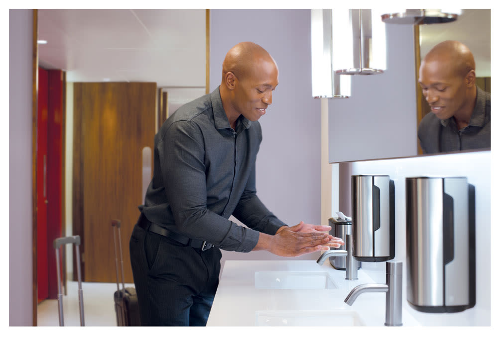 Alsco can assist with all your restroom services. We can keep your restrooms stocked with high-quality and effective washroom supplies, including touch-free soap, paper dispensers, mats, and automatic air fresheners. We ensure your bathrooms have clean air and floors, pristine mats, proper tissues and wraps, and adequate supplies and tools to clean and dry hands.